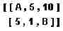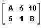 In algebraic mode, the syntax would be RREF([[A 5 10] [5 1 B]]).